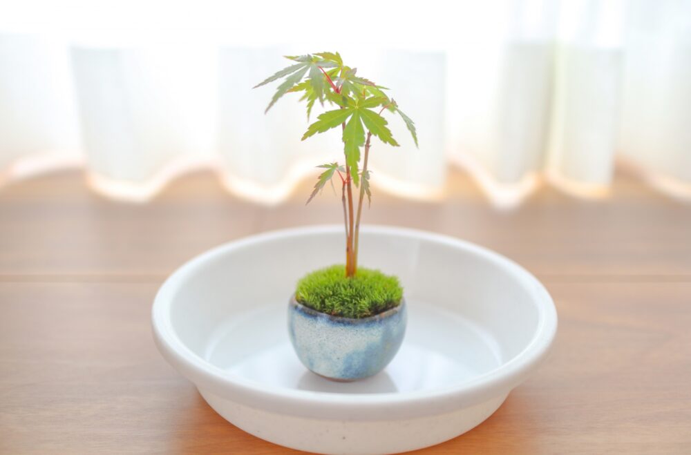 Recently, mini bonsai and moss ball (Kokedama) bonsai (苔玉)have become popular. Even beginners can enjoy growing their own bonsai at home.