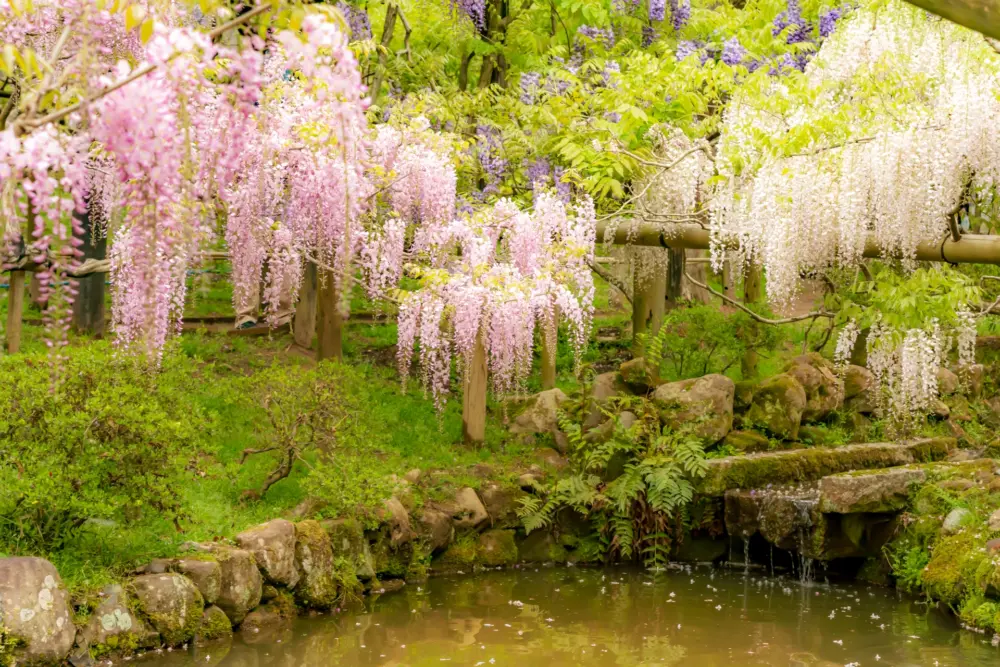 The garden is especially popular during wisteria season in late spring.